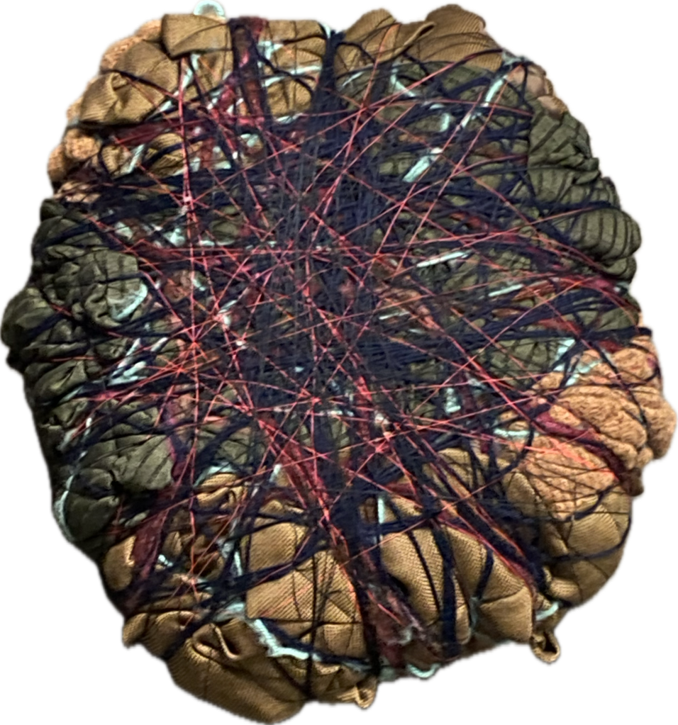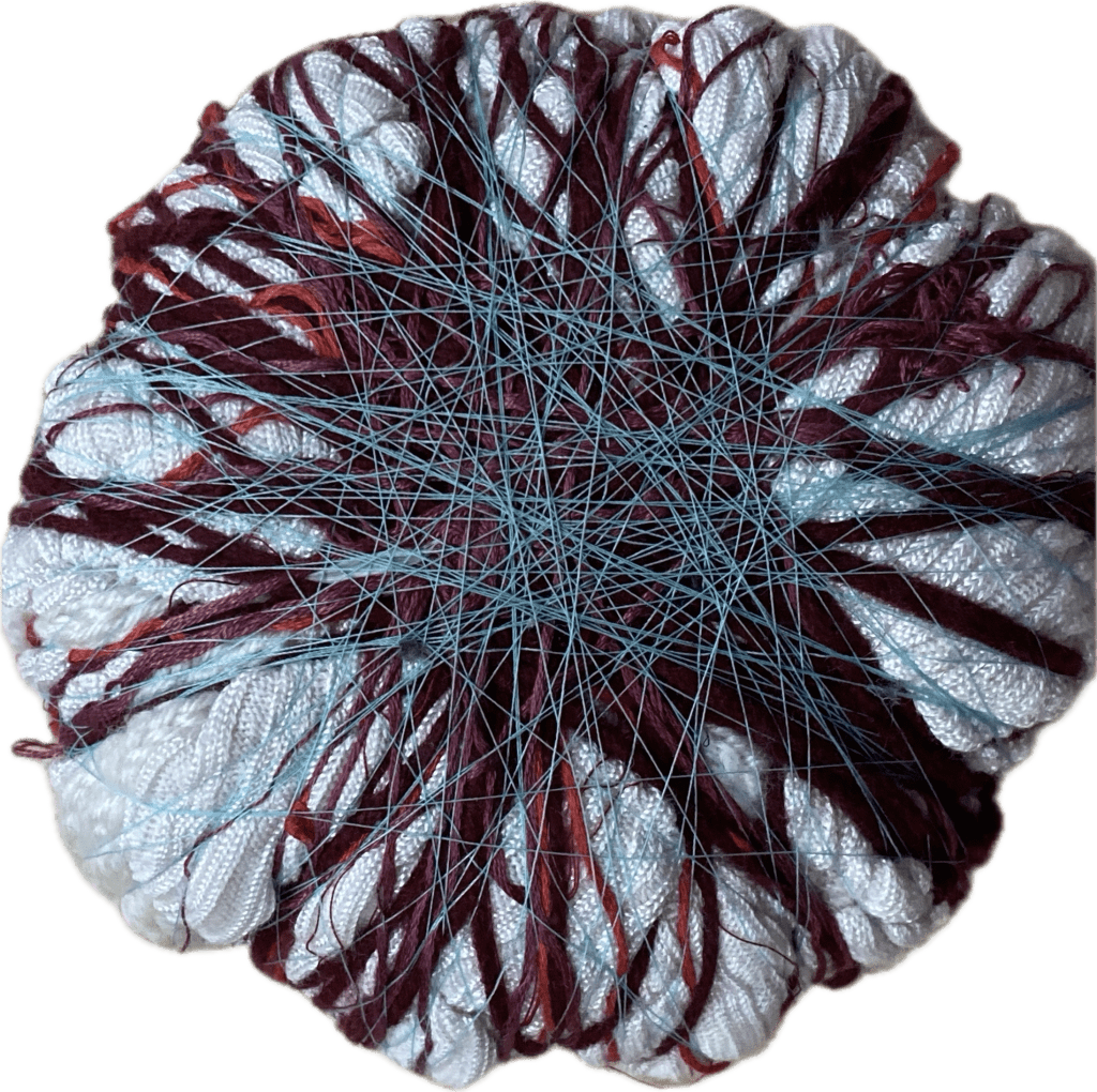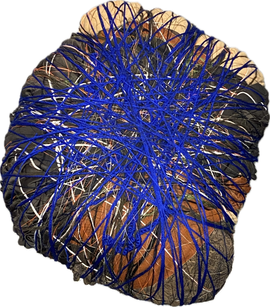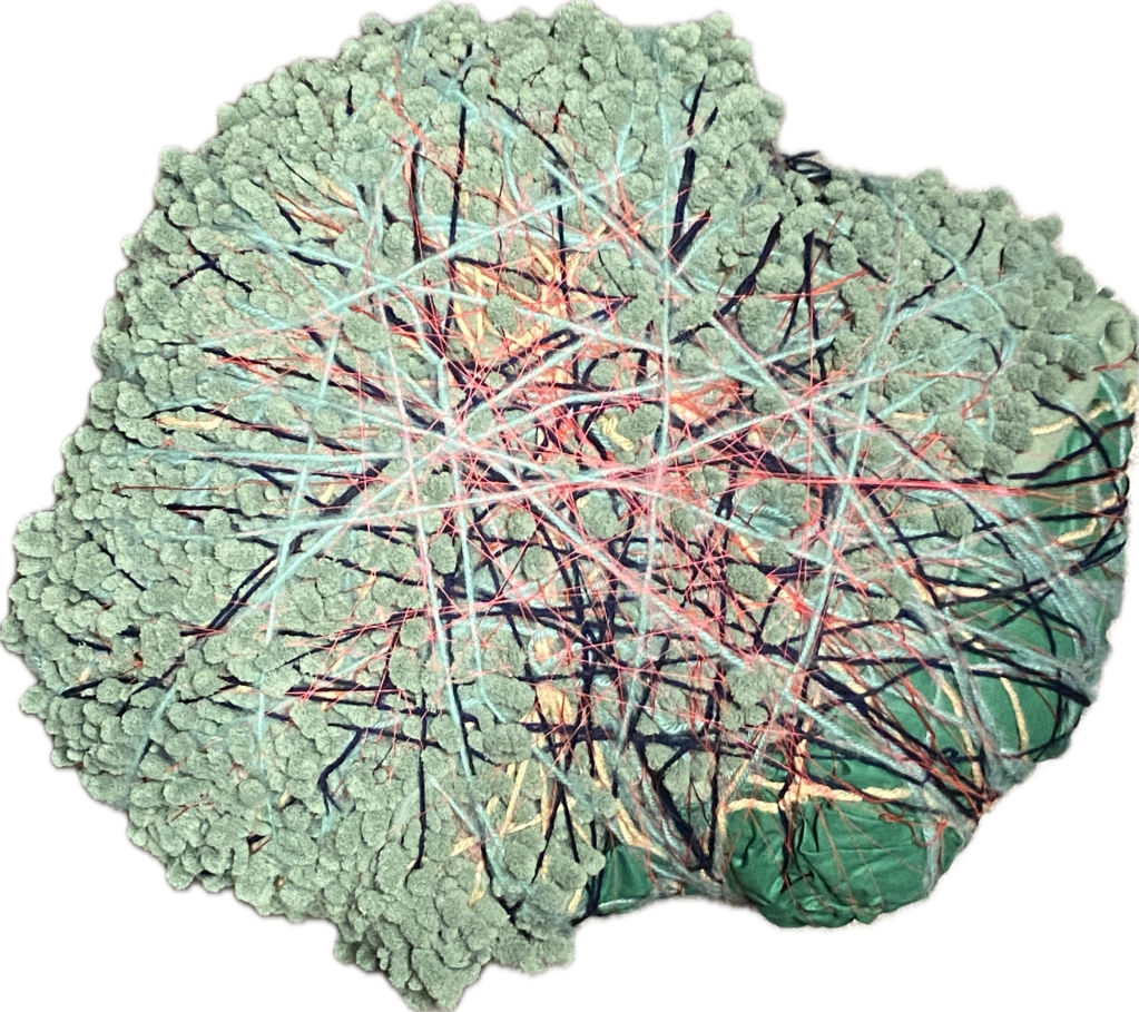 I designed a tent that they set up at each school, where they invite the students into this new world. We immerse the children in different shapes, textures, and scents. These rocks made of yarn and textiles are one example of that.