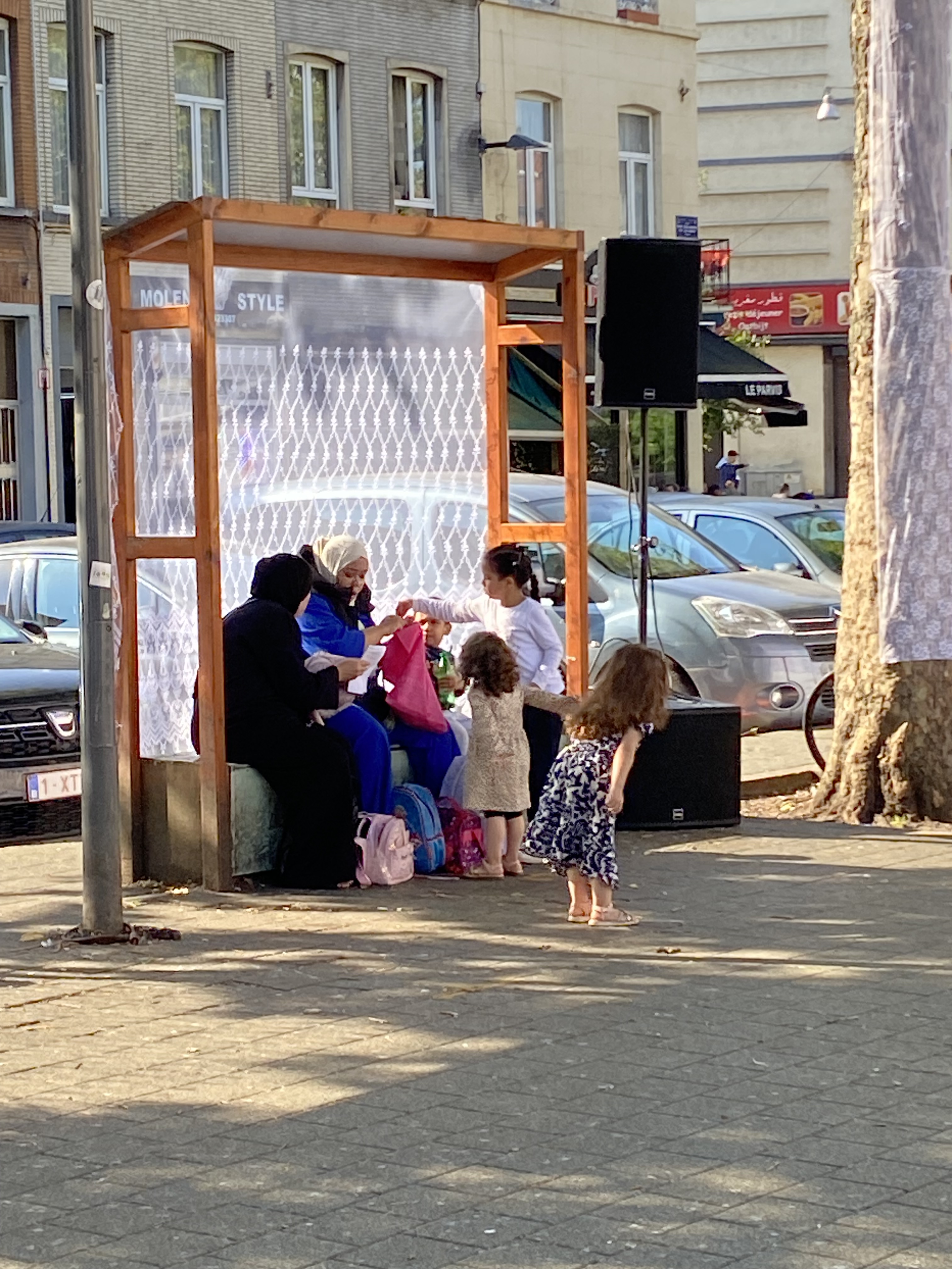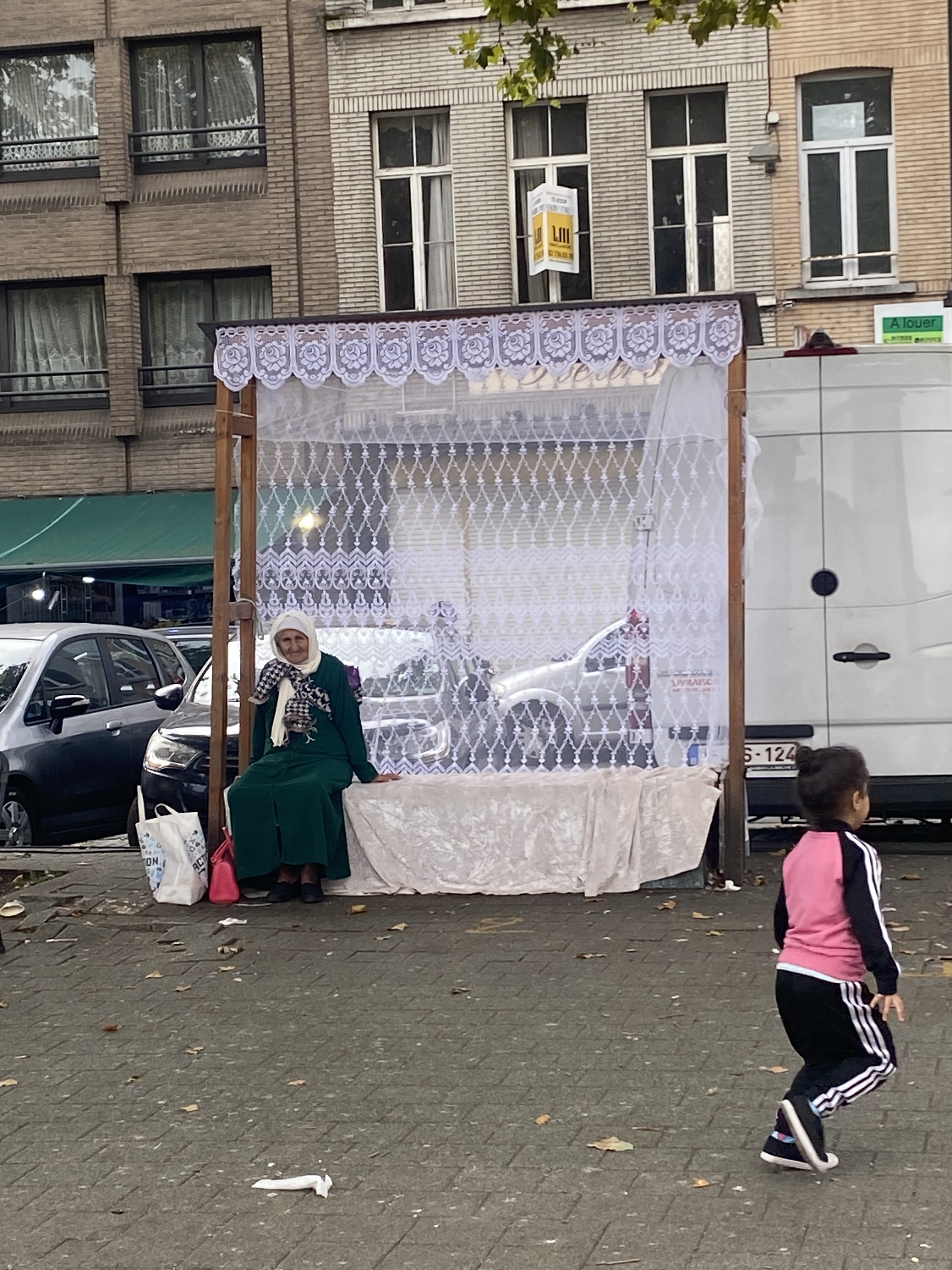 During Mariage and during the ateliers beforehand Lena Michel invited passers by to transform the space around them. People from the neighborhood would come by and bring their own fabrics to help decorate and think of ways how to create and take charge of the public space.