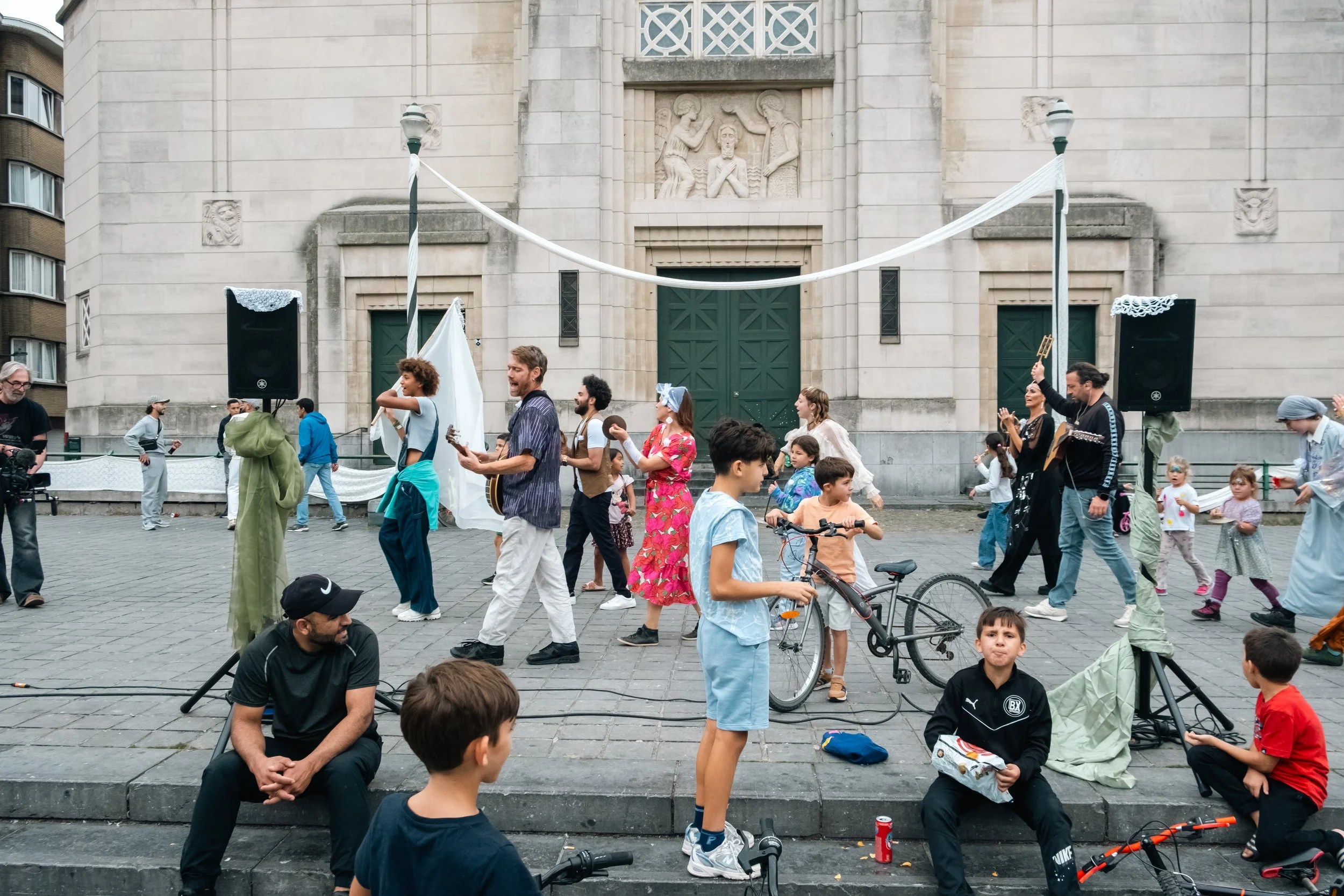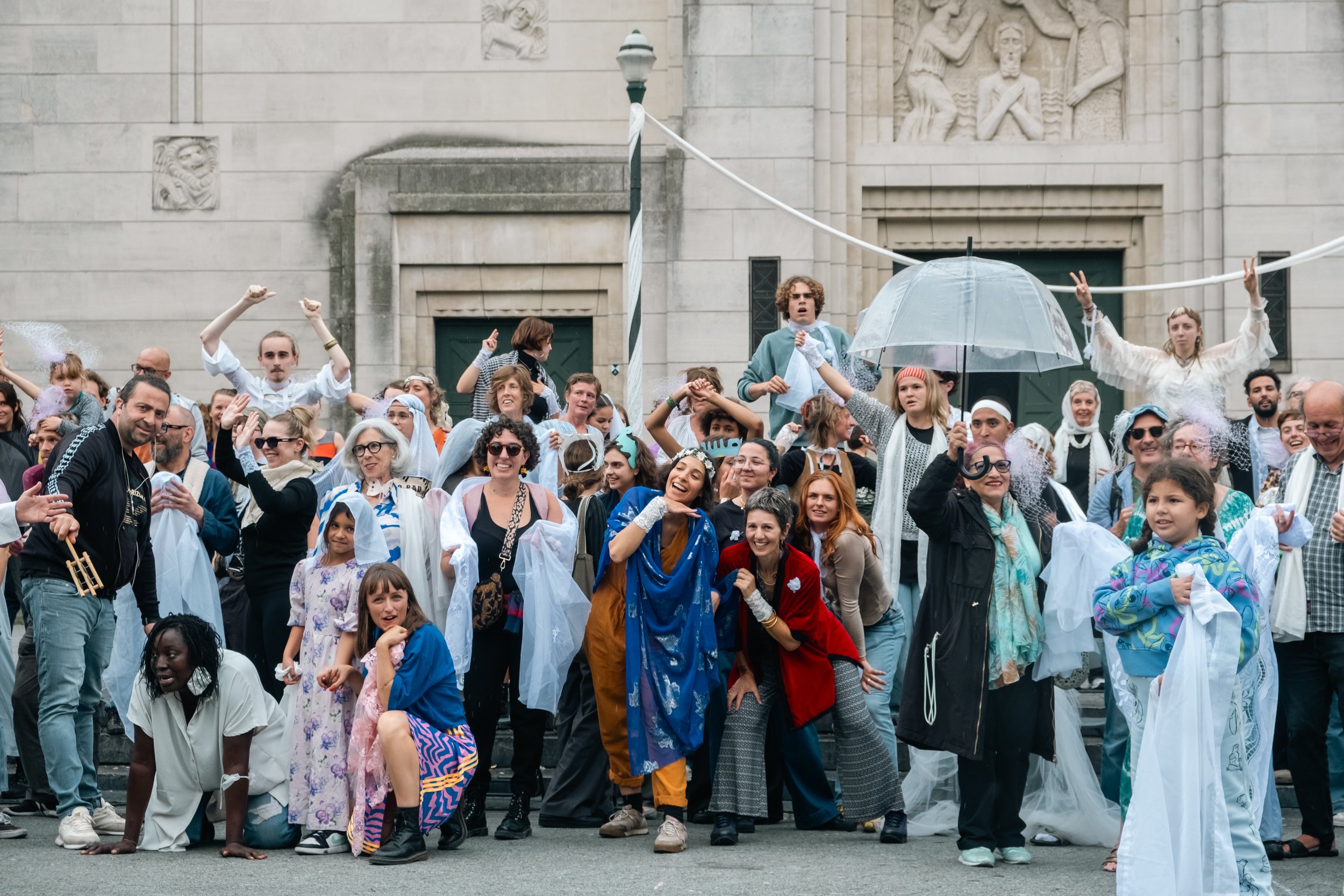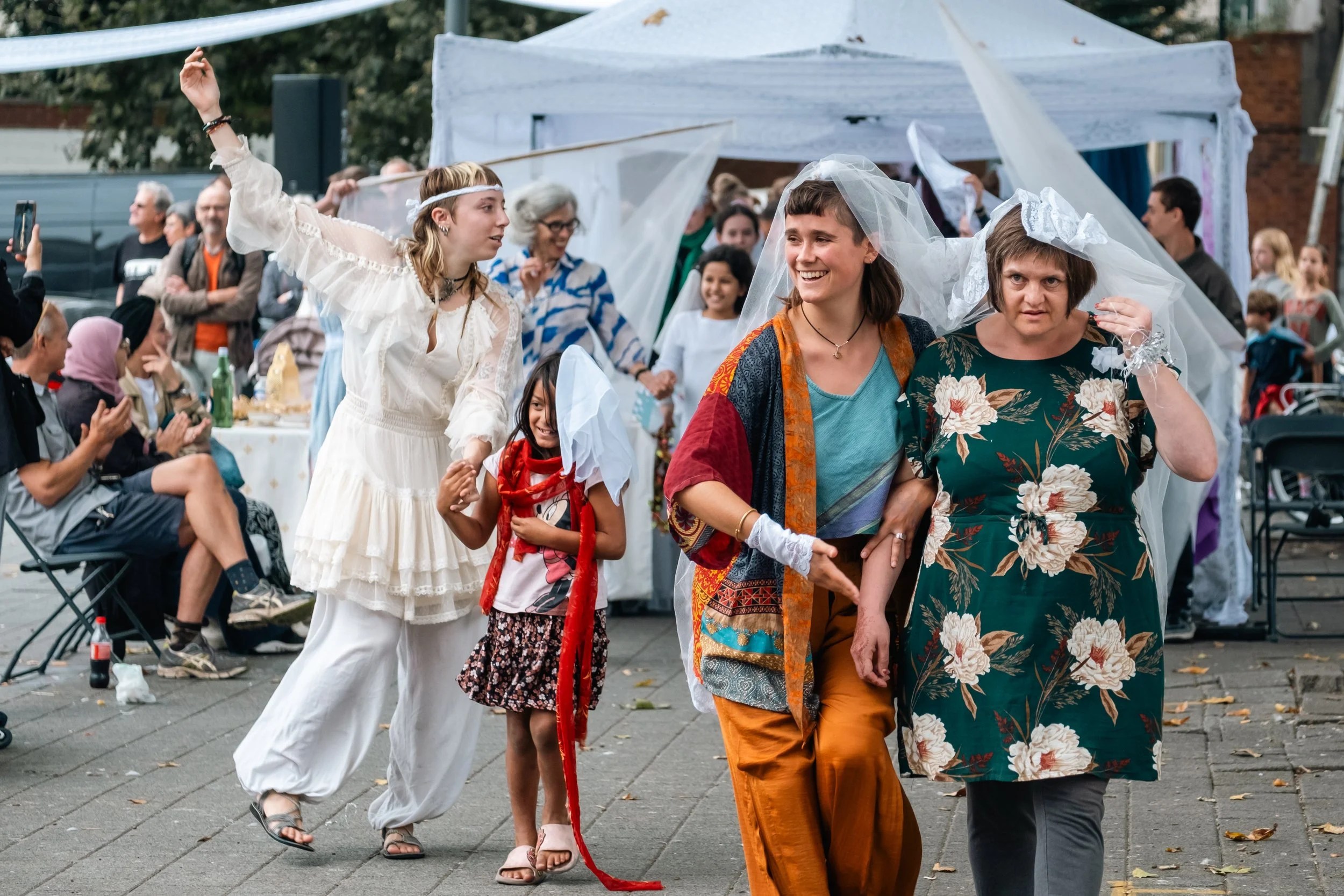 Mariage invites everyone – from cast members to accidental passersby – to take part in their own way, in a low-threshold and inclusive manner. Soon, the boundary between performers and audience fades, creating a shared experience that is accessible to all.